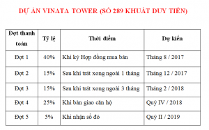 - Tiến độ đóng tiền của Dự án Vinata Tower gồm 5 đợt