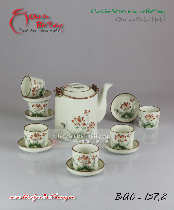 Ấm chén Vuông men kem in hoa sen