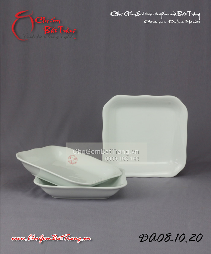 Đĩa vuông men trắng Bát Tràng số 1