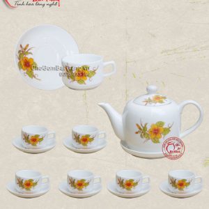 Bộ ấm chén Bát Tràng hết hợp với họa tiết vẽ tay tạo nên nét riêng và độc đáo của dòng sản phẩm ấm chén cao cấp Bát Tràng. Với họa tiết vẽ tay đem lại vẻ đẹp tự nhiên và tinh tế khi pha trà vào chén ta sẽ thấy được sự kết hợp rất ăn ý giữa màu men của bộ ấm chén và màu xanh của trà. Khi sử dụng bạn sẽ thấy hết ưu điểm của dòng sản phẩm cao cấp này: dễ dàng chùi rửa, không bám nước chè, họa tiết đồng điệu từ ấm đến chén