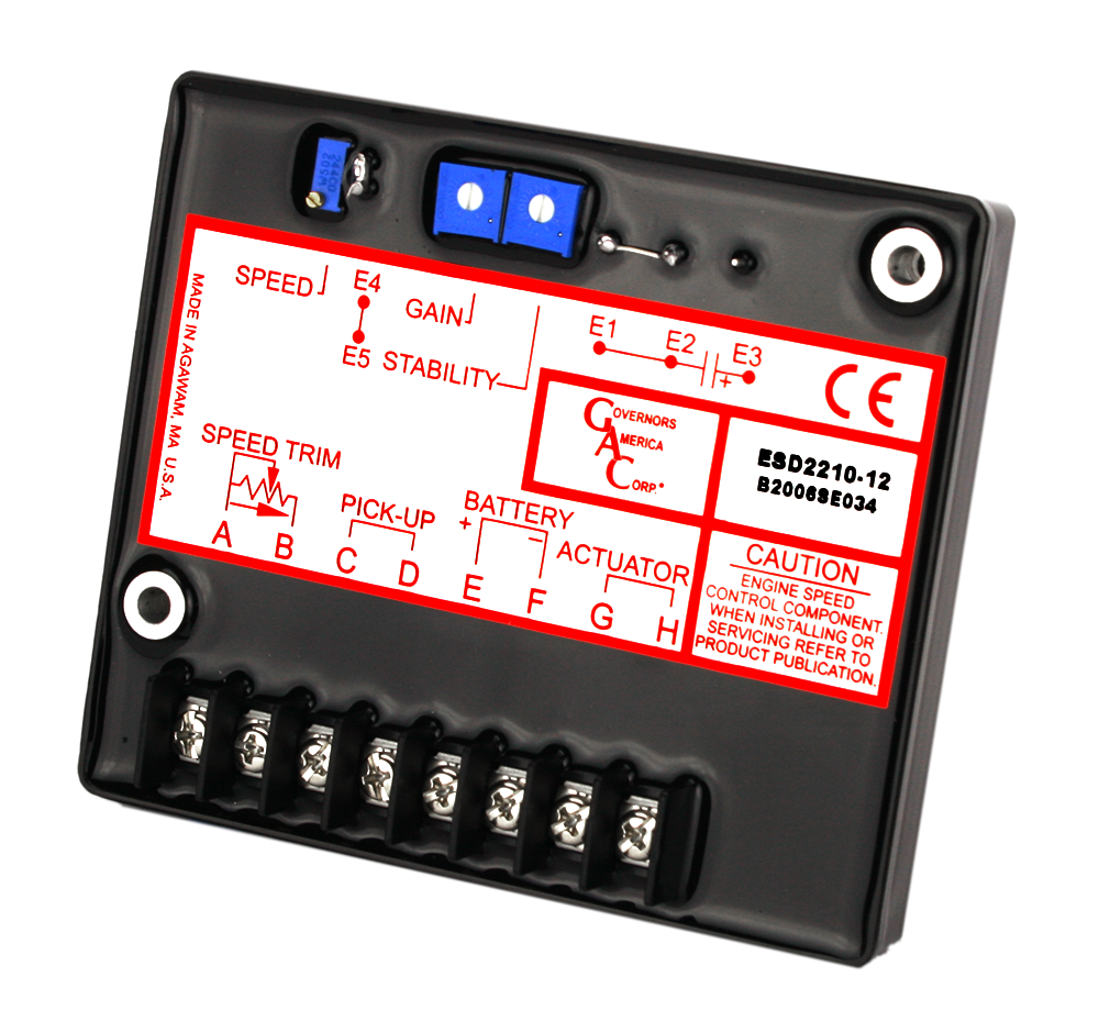Bộ điều khiển tốc độ Dòng ESD2200 là thiết bị điện tử được thiết kế để điều khiển tốc độ động cơ với đáp ứng nhanh và chính xác cho những thay đổi tải thoáng qua. Điều khiển vòng kín này, khi được kết nối với bộ truyền động điện tỷ lệ thuận và được cung cấp tín hiệu cảm biến tốc độ từ, sẽ điều khiển nhiều loại động cơ khác nhau ở chế độ đẳng thời hoặc nhỏ giọt. Nó được thiết kế cho độ tin cậy cao và nó cứng trong chậu để chịu được môi trường động cơ.