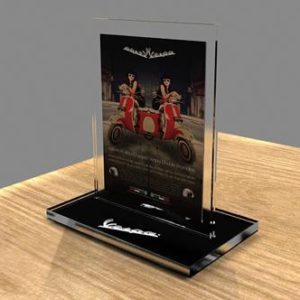 Chúng ta có thể dễ dàng bắt gặp các sản phẩm kệ menu mica trong các cửa hàng, showroom, quán ăn…với nhiều kiểu dáng khác nhau, chính vì những tác dụng mà chúng mang lại nên giờ đây chúng rất được ưa chuộng sử dụng và hầu như thay thế hoàn toàn cho những mẫu menu bằng giấy thông thường. Ngoài giúp khách hàng đựng các mẫu menu, hình ảnh công ty sản phẩm…menu mica còn là một trong những công cụ hỗ trợ chiến dịch marketing hiệu quả. Sau đây chúng tôi xin giới thiệu tới quý khách hàng mẫu kệ menu mica A4 đế tam giác liền KMN-2811 được thiết kế hoàn toàn từ chất liệu mica trong suốt, phần thân liền với đế giúp bạn tiết kiệm tối đa vật liệu và chi phí.
