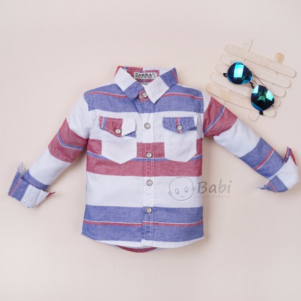 Áo sơ mi caro tay dài cho bé trai phối túi cực tây