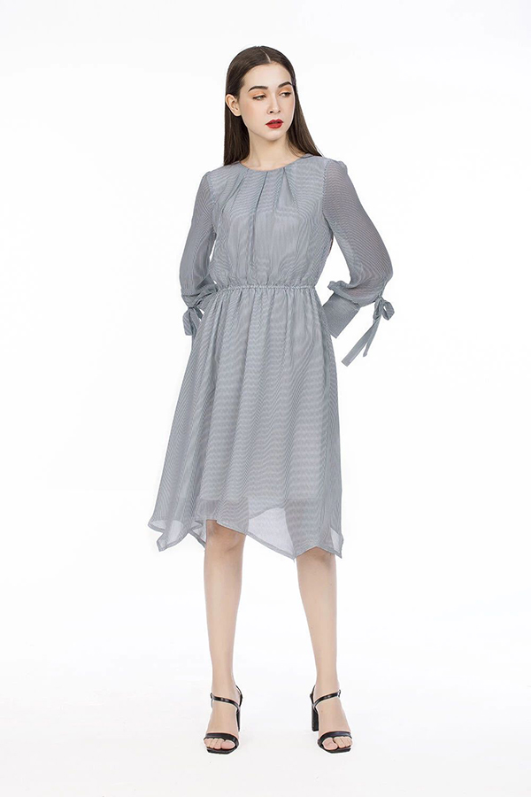 Đầm xòe dài tay phối nơ