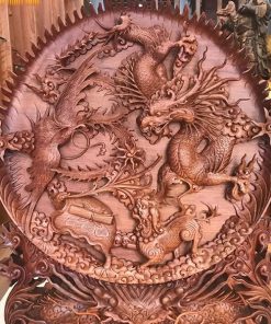 Đĩa tứ linh đục kênh bong gỗ hương liền tấm 76x60x5.5cm