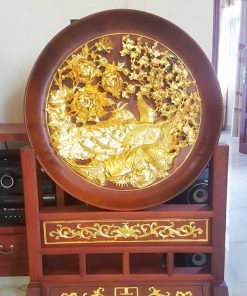Đĩa tứ linh đục kênh bong gỗ hương liền tấm 90x70x7cm